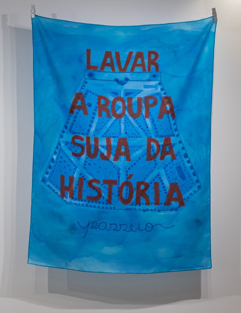 Ao inscrever em tecido o traçado de Mestre Valentim para o Passeio Público, propondo lavar a roupa suja da história, Mariana traz à tona as águas dominadas pelo desejo higienista de “limpar” o ar e repovoar a região com a aristocracia.