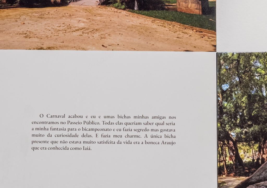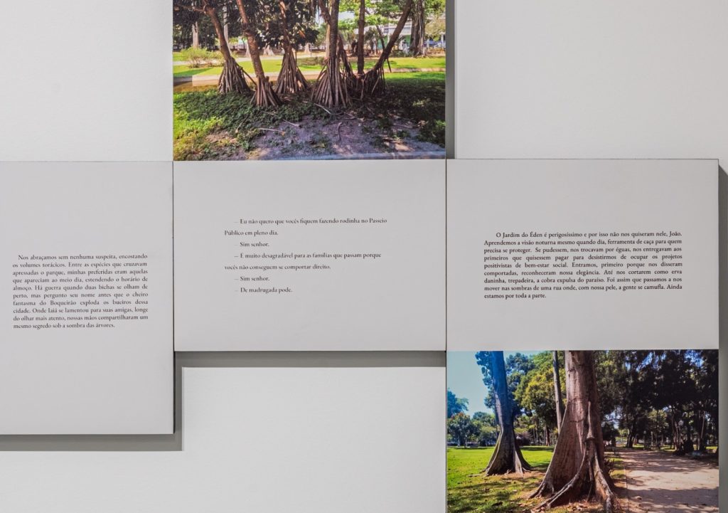 Evocando a personalidade de Madame Satã, o artista visual, poeta e pesquisador carioca se debruça sobre narrativas ligadas ao Passeio Público no início do século XX. A ambiguidade dos vetos e permissões de identidades que subverteram o projeto original e suas possibilidades de manifestação de afeto em um jardim supostamente dedicado ao amor são questões abordadas na instalação que reúne o registro da repercussão de um monumento ficcional, fatos biográficos e a devolução simbólica dessas presenças para o espaço do Passeio Público.
