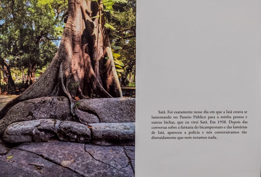 Caranguejo da Praia das Virtudes, uma das alcunhas de Madame Satã e aquela diretamente ligada à sua força e enfrentamento, é o título da obra que traz para a luz do dia as memórias da malandragem, da homoafetividade, da negritude e da subversão da performatividade de gênero que, diferentemente das figuras notáveis monumentalizadas no jardim, um dia foi designada com suas amigas às penumbras do parque e da história oficial. amorim nos conduz por sua fabulação narrando encontros possíveis por um Passeio sitiado pelo poder policial repressor, levando-nos ao centro da roda em que dança com Iaiá, Nega Loma, Deliciosa, Capivara e Madame Satã.